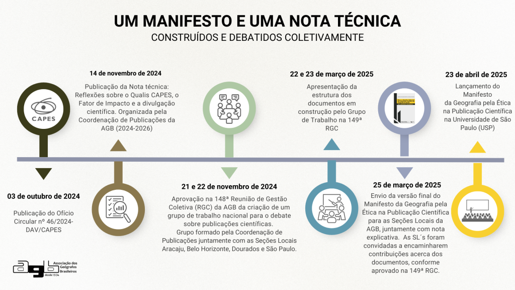 O presente documento compreende apenas ao Manifesto da Geografia pela Ética na Publicação Científica, o qual sintetiza as diretrizes postas na Nota Técnica de Orientações para a Promoção da Ética na Produção Científica em Geografia,
